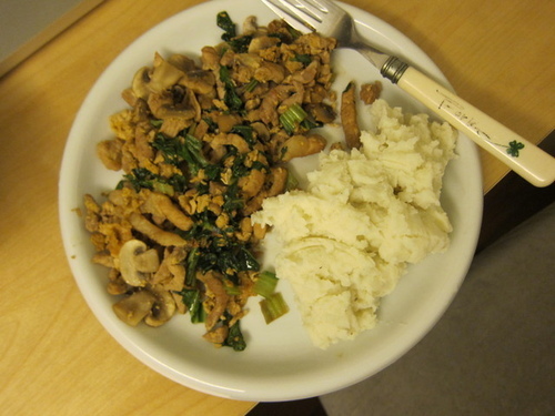 醬油炒蛋肉絲小芥菜和洋菇